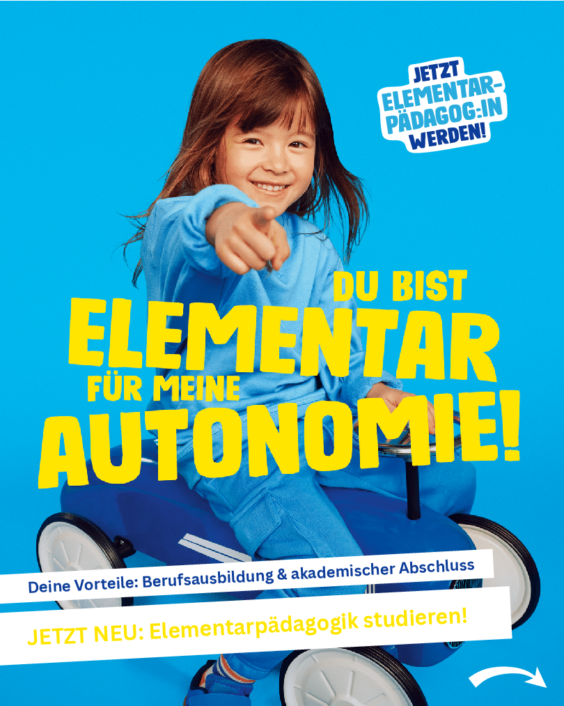 | Qualifikation | Berechtigung, als Elementarpädagog*in tätig zu sein und Kinder vor Schuleintritt in elementaren Bildungseinrichtungen (Kindergärten) zu begleiten |