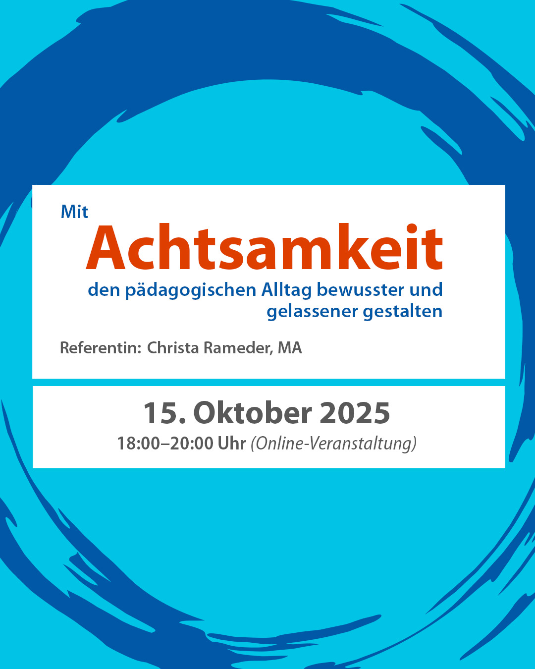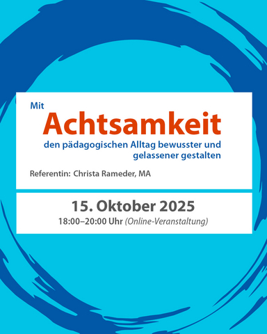 Der pädagogische Alltag ist geprägt von Tempo, Erwartungen und einer unaufhörlichen Flut an Eindrücken. Umso stärker wächst die Sehnsucht nach Ruhe, Klarheit und innerer Balance. Achtsamkeit eröffnet hier neue Wege: Sie hilft, den Moment bewusst wahrzunehmen, Stress mit mehr Gelassenheit zu begegnen und die eigenen Kräfte gezielt einzusetzen. Diese Veranstaltung lädt dazu ein, Achtsamkeit nicht nur als Methode, sondern als innere Haltung zu entdecken – eine Haltung, die stärkt und bereichert.