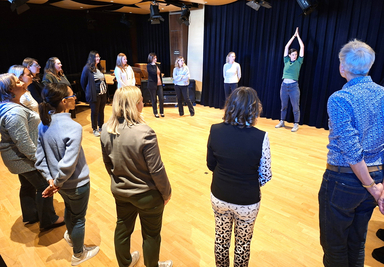 Das Theater – sonst Ort der Inszenierung, der Interpretation und der künstlerischen Darstellung – verwandelte sich für einen Tag in einen Erfahrungsraum für Führung im weitesten Sinne. In einer Atmosphäre, die gleichermaßen geprägt war von Konzentration, Offenheit und Experimentierfreude, konnten die Teilnehmenden erleben, was es bedeutet, im Moment präsent zu sein, Wirkung zu entfalten und bewusst mit den eigenen Ausdrucksmitteln umzugehen.