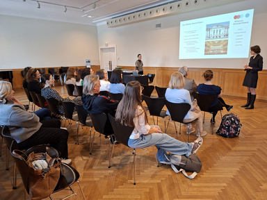 Die abschließende Führung durch das Konzerthaus gab Aufschlüsse über die Geschichte des Hauses, seine exzellente künstlerische Planung und hochentwickelte Funktionalität, die das Wiener Konzerthaus – gemeinsam mit dem stilistisch vielschichtigen Konzertbetrieb mit über 800 Konzerten pro Saison – zu einer der bedeutendsten Institutionen des internationalen Musiklebens machen: Die drei Hauptsäle befinden sich auf einer Ebene im 1. Stock und sind aus akustischen Gründen baulich voneinander getrennt. Jeder Saal ist ein eigenes Gebäude mit Außenmauer und eigenem Dach, durch Lichtschächte sind sie miteinander verbunden. Der Mozart-Saal, in dem die Fenster zugemauert wurden, zählt zu den fünf Sälen mit der besten Akustik weltweit und wird daher häufig für Tonaufnahmen verwendet. Der Berio-Saal im Keller ist mit modernster Licht- und Tontechnik ausgestattet und bietet die Möglichkeit eines völlig flexiblen Bühnenaufbaus. Im Erdgeschoß befindet sich ein Relief von Kaiser Franz Joseph, der zur Eröffnung im Jahr 1913 eigenhändig den Schlussstein einsetzte.