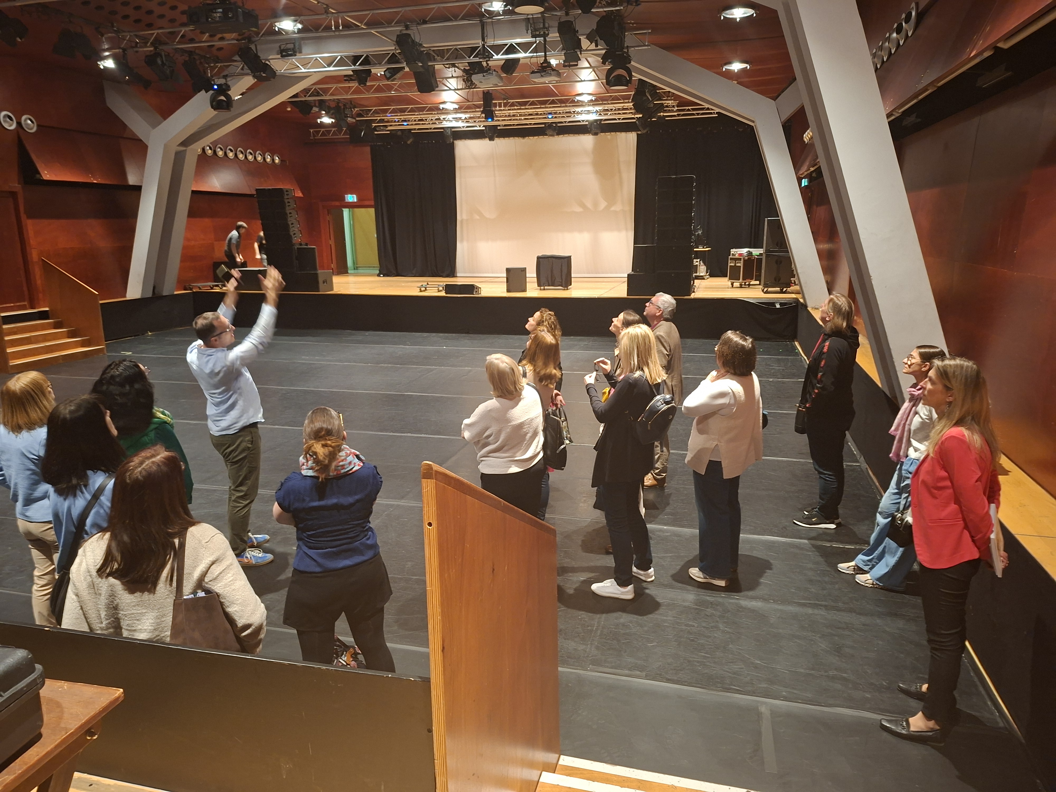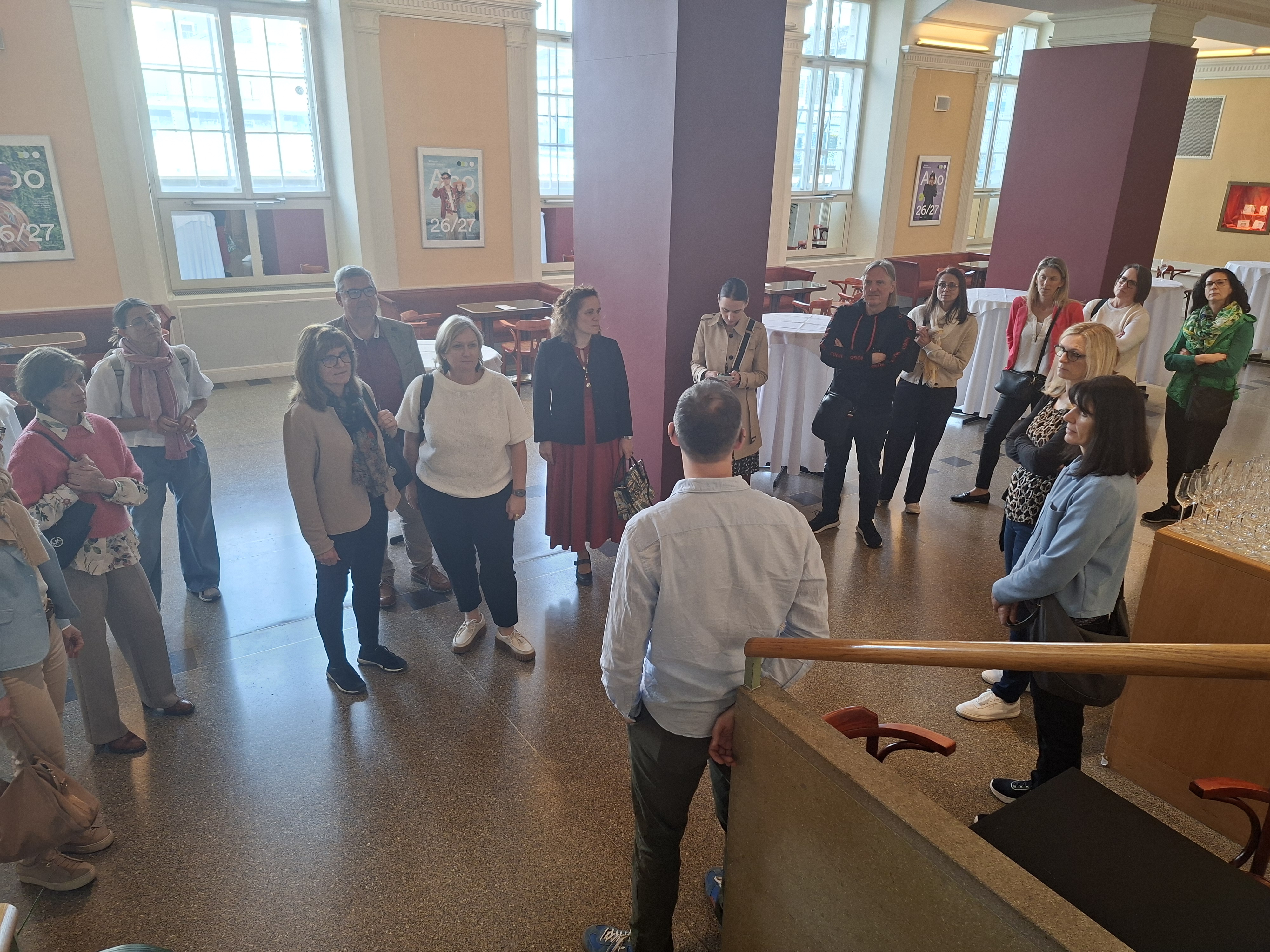 Ein geschäftiger Vormittag im Wiener Konzerthaus: Technikaufbau und Soundcheck im Großen Saal und im Berio-Saal, Generalproben im Schubert-Saal (Wiener Kammerorchester) und im Mozart-Saal (Jess-Trio-Wien) und eine Pressekonferenz zur Präsentation des Abonnementprogramms 2026/27 im Wotruba-Salon. Musiker*innen, Techniker, Mitarbeitende und Gäste sind im ganzen Gebäude unterwegs, es herrscht reges Treiben und doch sitzt jeder Handgriff in der straffen Organisation des Hauses. Aus jedem Saal erklingt Musik, man spürt den ganz eigenen Spirit dieser kulturellen Institution, die 118 Mitarbeiter*innen und 30.000 fördernde Vereinsmitglieder verbindet. Ein sehr inspirierendes Arbeitsumfeld, wie Frau Mag. Agnes Wiesbauer-Lenz aus dem Vorstand berichtete. Durch die Einblicke in das Tätigkeitsfeld des Kulturmanagements erhielten die schulischen Führungskräfte unter anderem Anregungen für ihre eigene Führungsarbeit: “Als Führungskraft muss man einerseits nah an den Leuten bleiben und andererseits sich herausnehmen und das große Ganze sehen. Dieser Spagat bleibt eine Herausforderung.”