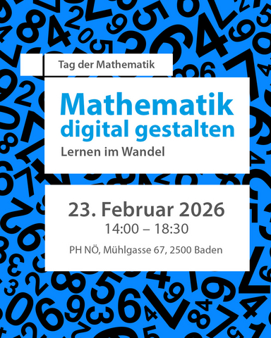 Die Pädagogische Hochschule Niederösterreich (PH NÖ) lädt wieder zum jährlichen “Tag der Mathematik” am 23. Februar 2026 (14:00-18:30h) am Campus Baden unter dem Motto “Mathematik digital gestalten – Lernen im Wandel” ein.
