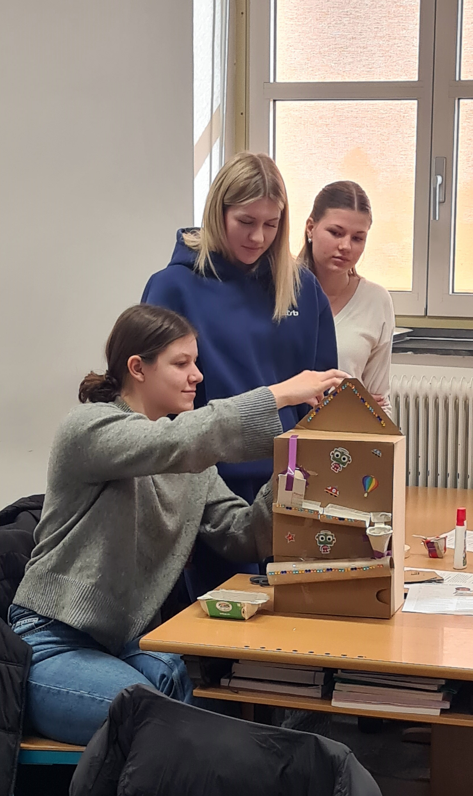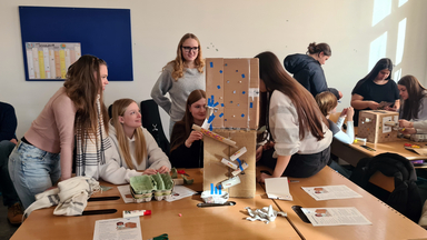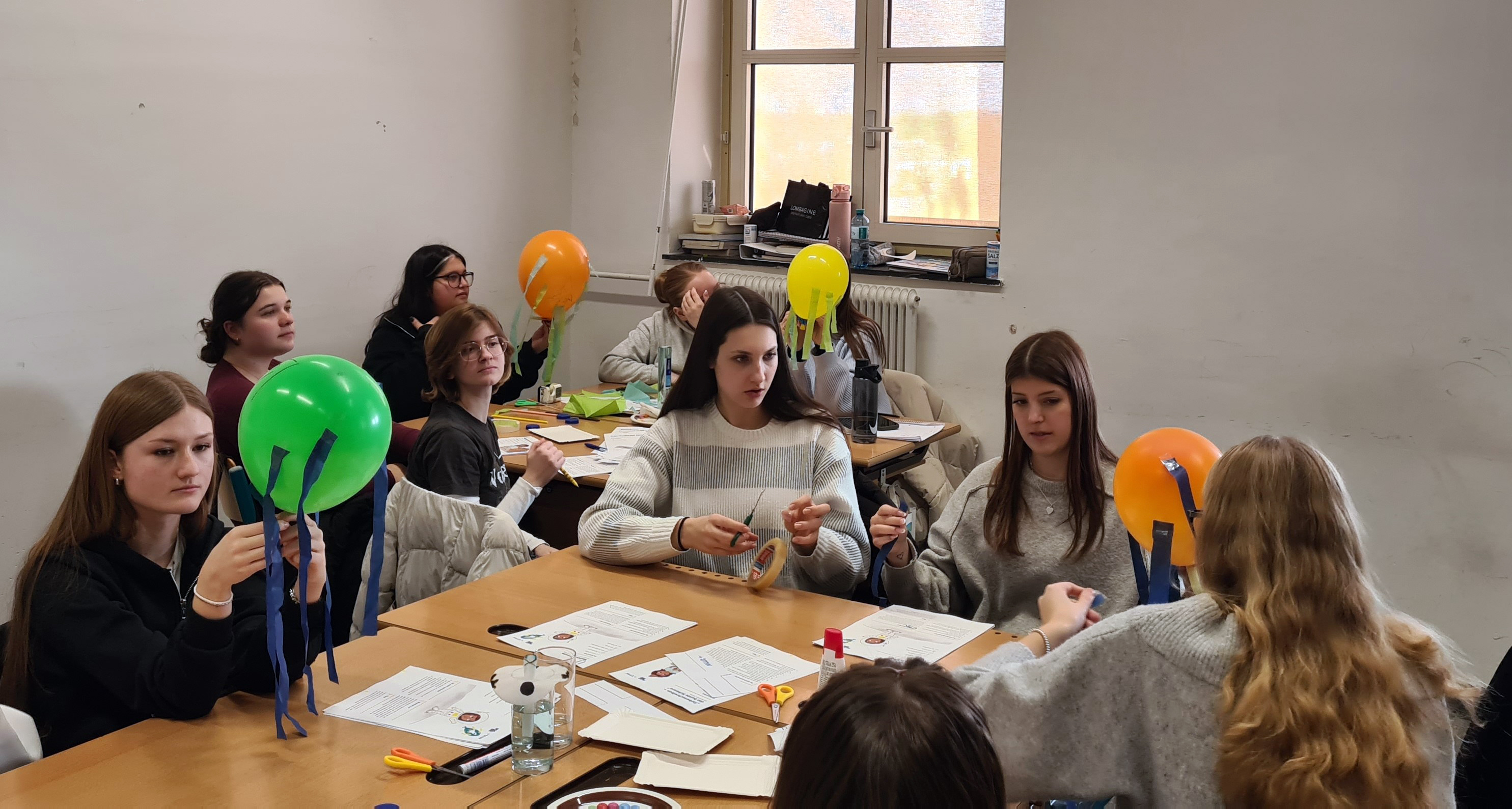 Der zweite Workshop wurde am 21. Jänner 2026 von den Hochschullehrpersonen durchgeführt. Besonders große Begeisterung zeigte sich beim gemeinsamen Konstruieren einer Murmelbahn aus Alltagsmaterialien. Die Aufgabenstellung förderte gezielt Kommunikation, Kooperation und problemlösendes Handeln. Auch das gemeinsame Starten der Wirbelflieger im Stiegenhaus sowie der Countdown beim Start der Ballonraketen und Raketenautos sorgten für sichtbare Freude am Forschen und Experimentieren. Das Rückstoßprinzip wurde dabei unmittelbar erfahrbar. „Es funktioniert!“, brachte eine Schülerin ihre Begeisterung auf den Punkt.