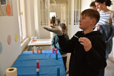Von Mathematik zum Anfassen über Computational Thinking, Chemie-Experimente und nachhaltige Kreislaufwirtschaft bis hin zu faszinierenden Alltagsphänomenen wurde Wissenschaft greifbar und erlebbar. Die naturwissenschaftlichen Stationen sorgten für leuchtende Augen und echtes Staunen. Riesige Seifenblasen, selbst hergestellter Slime und überraschende Wow-Effekte machten Chemie und Physik auf spielerische Weise erfahrbar und luden vor allem junge Forscher*innen dazu ein, selbst auszuprobieren, zu entdecken und Fragen zu stellen.