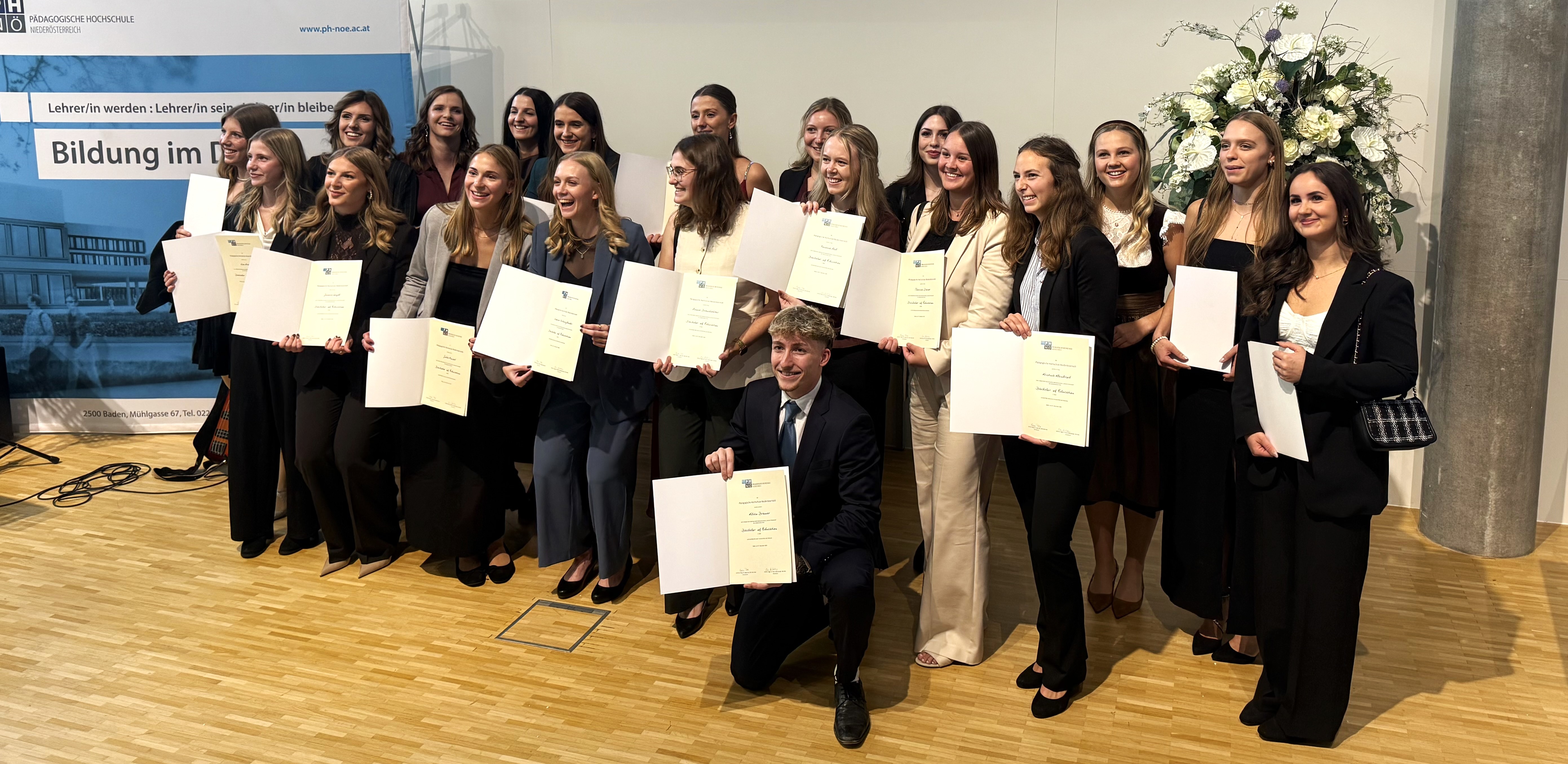 Am Freitag, dem 7. November 2025, versammelten sich die Absolvent*innen des Bachelorstudiums Primarstufe und des Masterstudiums Primarstufe sowie der Hochschullehrgänge mit Masterabschluss im großen Hörsaal der Pädagogischen Hochschule Niederösterreich (PH NÖ), um diesen bedeutsamen Meilenstein gemeinsam mit ihren Angehörigen und Freund*innen zu feiern.