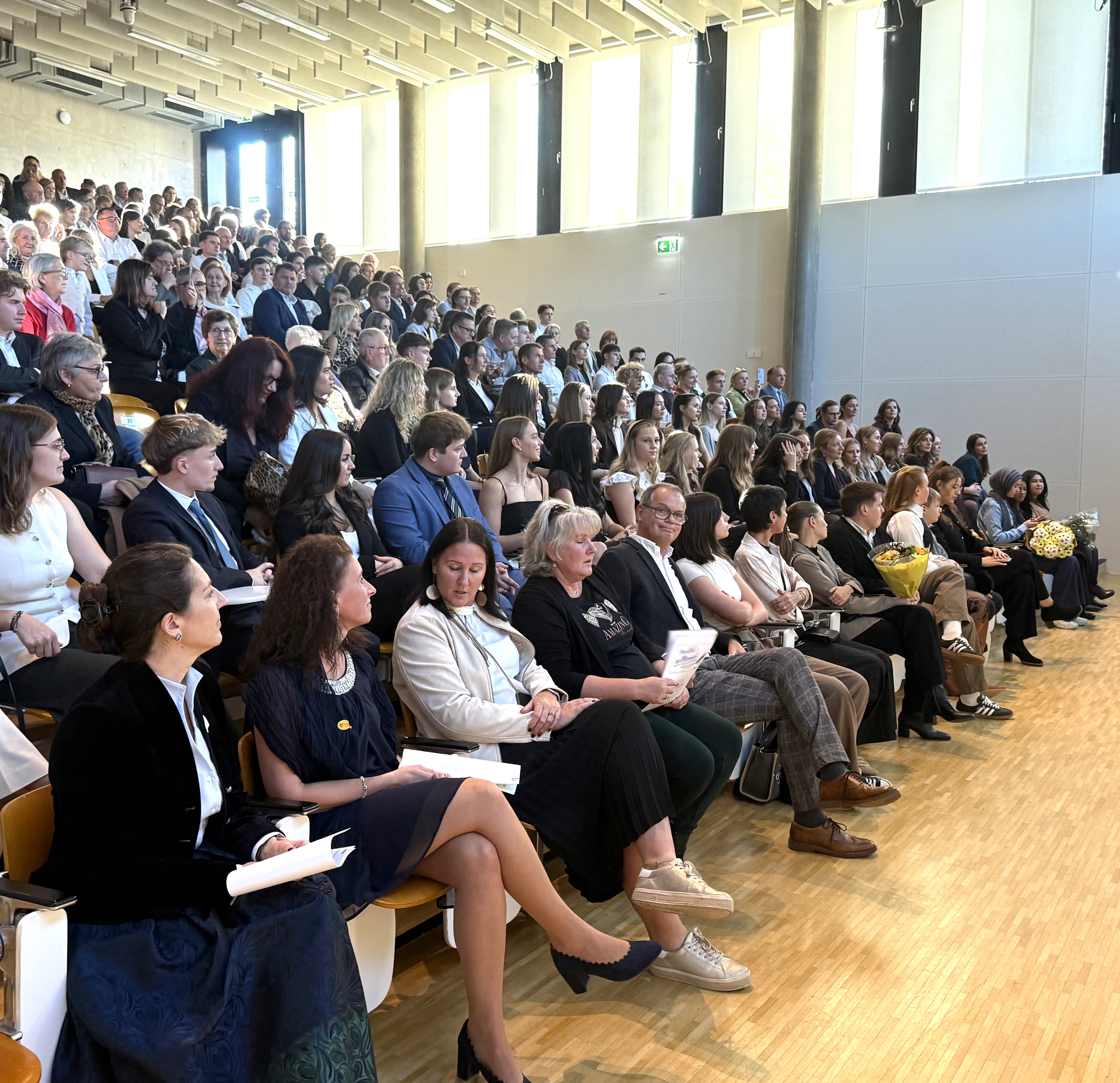 Auch die 52 Master-Absolvent*innen wurden einzeln namentlich aufgerufen und die Titel ihrer Masterarbeiten vorgelesen: Die persönliche Übergabe der Dekrete verlieh der Feier einen würdevollen Rhythmus und ließ sichtbar werden, wie vielfältig und tiefgehend sich die Studierenden mit pädagogischen Fragen beschäftigt hatten.