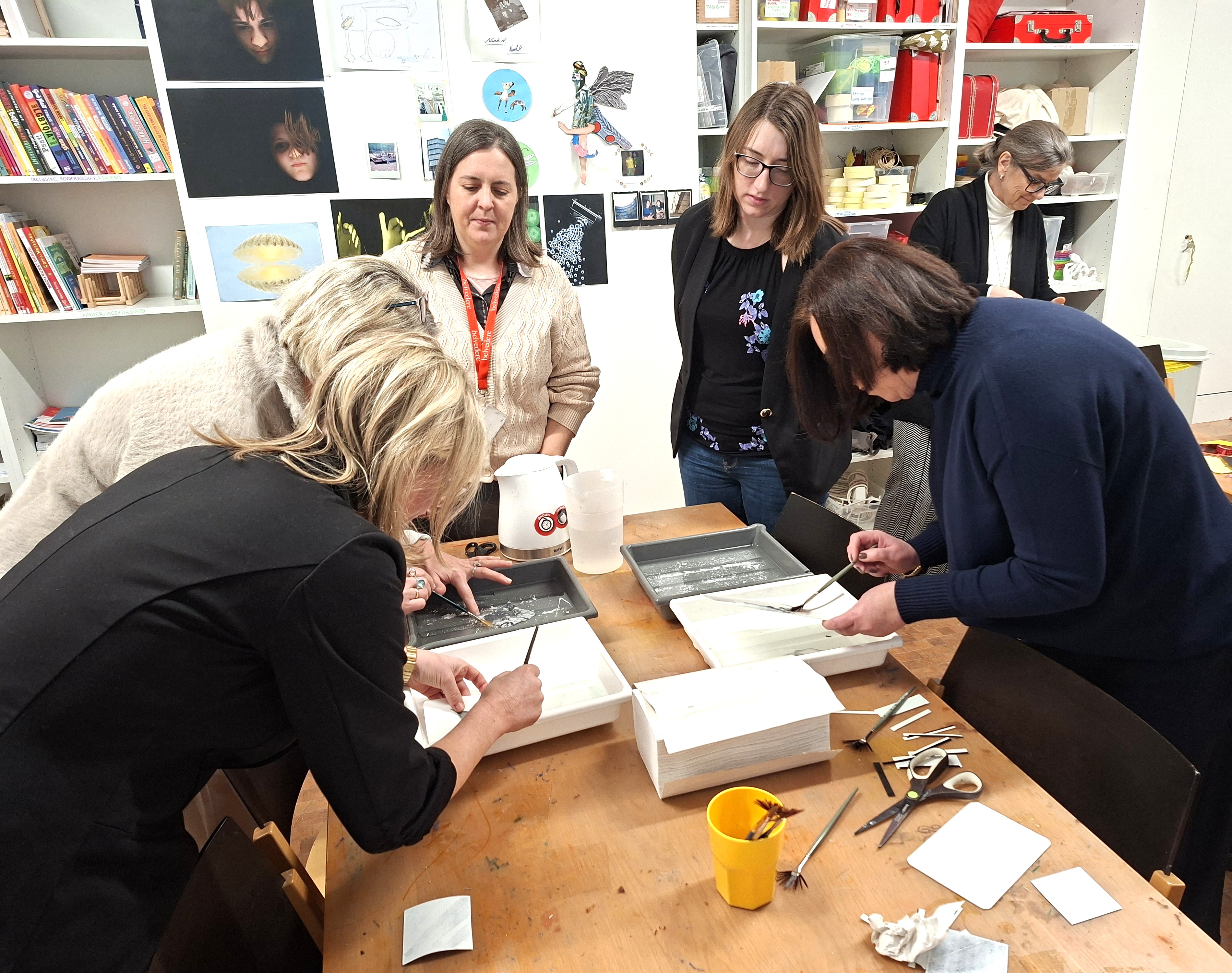 Ausgerüstet mit Polaroid-Sofortbildkameras machten die schulischen Führungskräfte eigene Schnappschüsse im Museum und probierten im Atelier verschiedene kreative Bearbeitungstechniken aus.