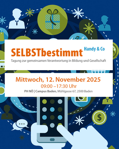 Die Pädagogische Hochschule Niederösterreich (PH NÖ) und die Fachstelle für Gewaltprävention laden gemeinsam zum Symposium „SELBSTbestimmt Handy & Co“ am 12. November 2025 (09.00-17.30 Uhr) an der PH NÖ (Campus Baden) ein. Die Tagung widmet sich der gemeinsamen Verantwortung in Bildung und Gesellschaft, insbesondere im Kontext der „Handy-kompetenten Schule“ und der Nationalen Strategie zur schulischen Gewaltprävention.